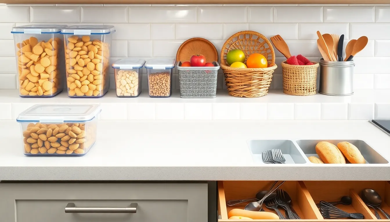 Bins and baskets serve as essential tools for kitchen organization. Clear plastic bins help users easily identify contents, making access to snacks and ingredients straightforward. Decorative baskets provide an attractive way to store fruits or bread, adding visual appeal to countertops. Consider various sizes for different areas. Small bins fit well in drawers for organizing tea or spice packets, while larger baskets work great for pantry shelving. Utilizing these items can maximize storage potential and keep clutter at bay.